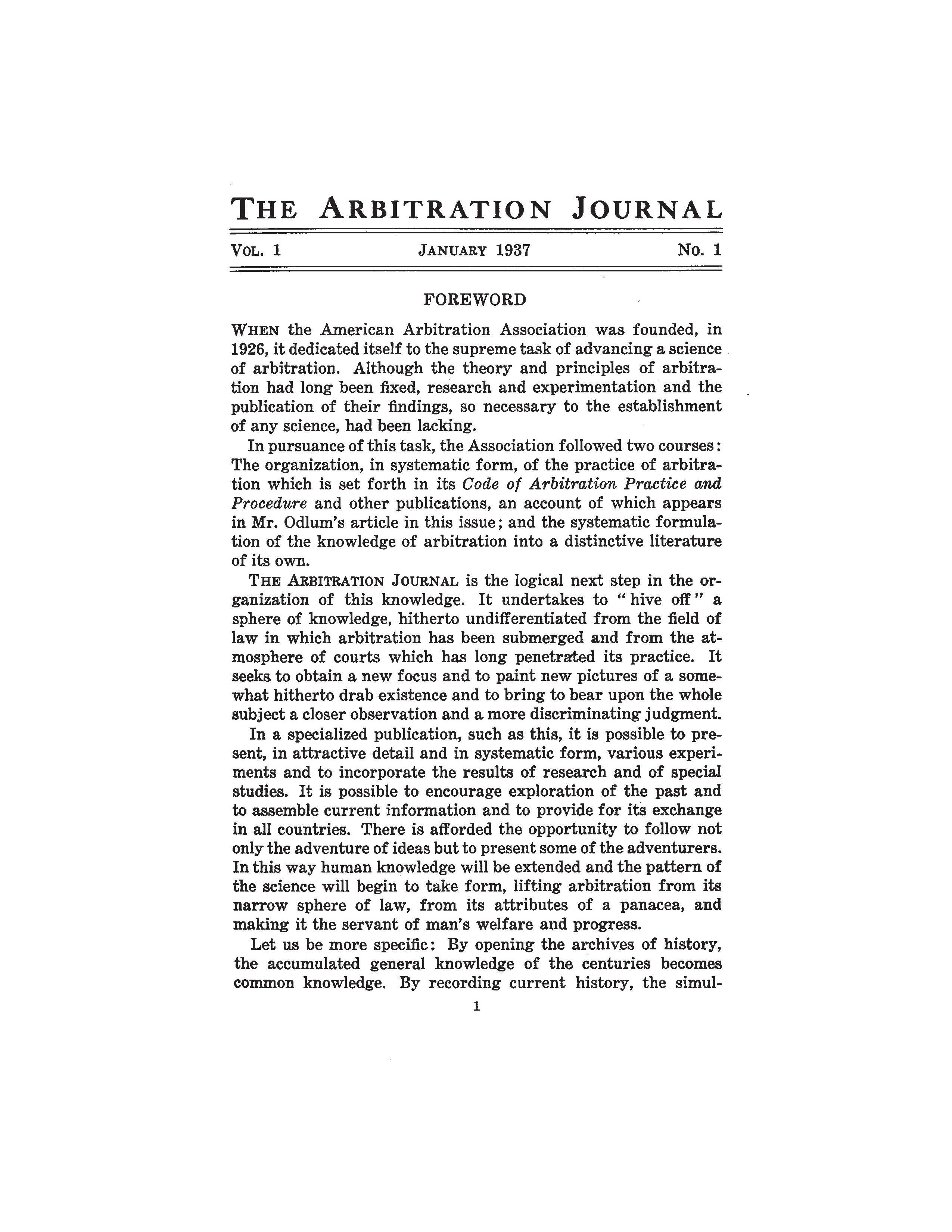 Dispute Resolution Journal- Volume 1, No. 1 (1937)